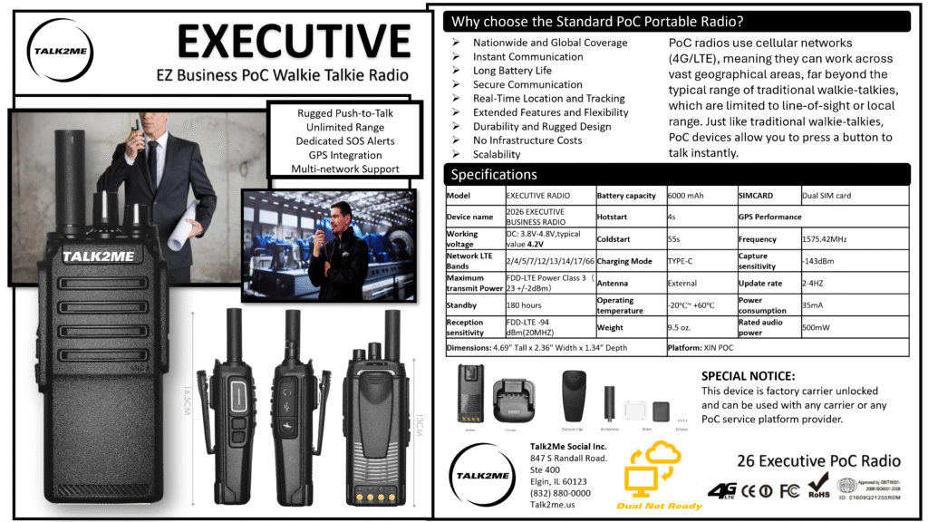 In conclusion, the talk2me 2026 Executive Radio Walkie-Talkie is an ideal choice when looking out for reliable communication devices; durable,long-range features; multiple special functions perfect whether at home or abroad.